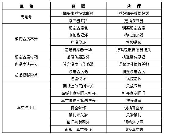 真空干燥箱设备故障现象及故障分析及解决方案: